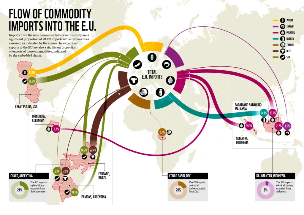 In addition to the primary research on the ecosystems themselves, we also provided a series of case studies to illustrate how the EU contributes to global ecosystem loss via its commodity imports from biomes from all over the world.